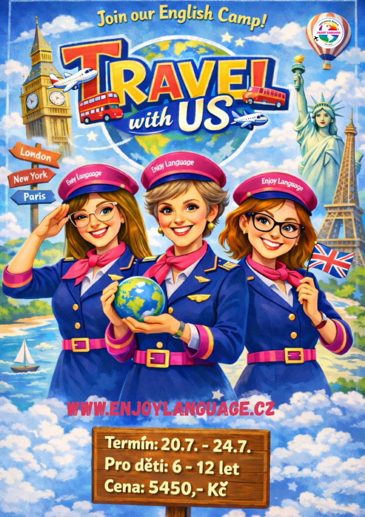 Od 20. 7. do 24. 7. 2026 se společně vydáme na velkou dobrodružnou výpravu kolem světa! Každý den „přistaneme“ v jiné zemi, poznáme její zajímavosti, kulturu i typická slovíčka – a všechno samozřejmě v angličtině.